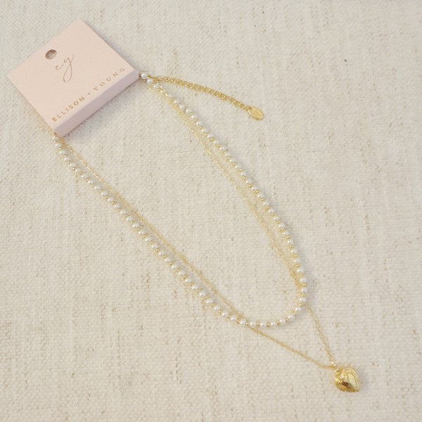 This lovely layered necklace features a mini locket adorned with pearls and a heart design. Dainty details, understated charm!